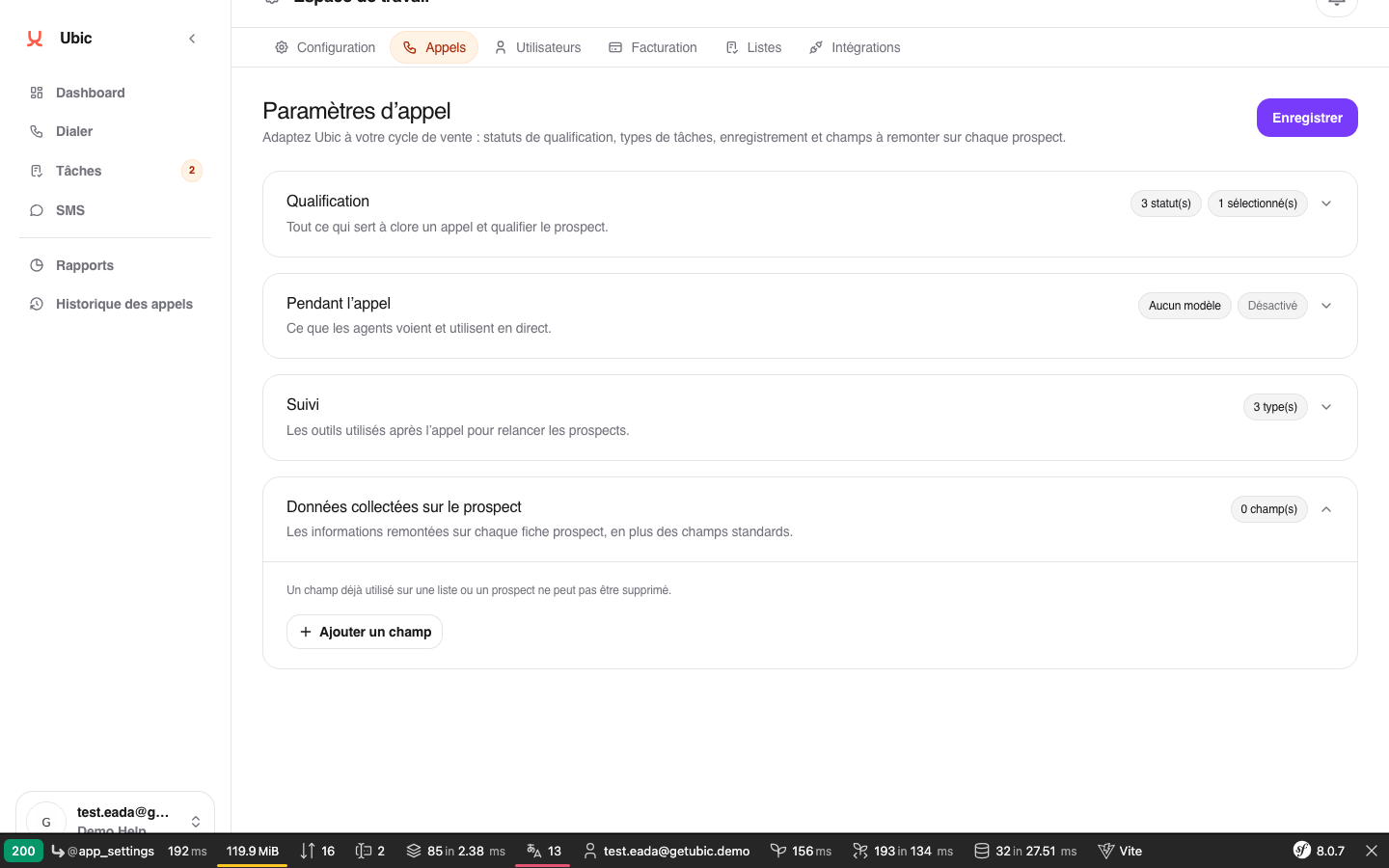 Ces deux options sont indépendantes. Un champ peut être visible en appel uniquement, en fiche uniquement, ou dans les deux.