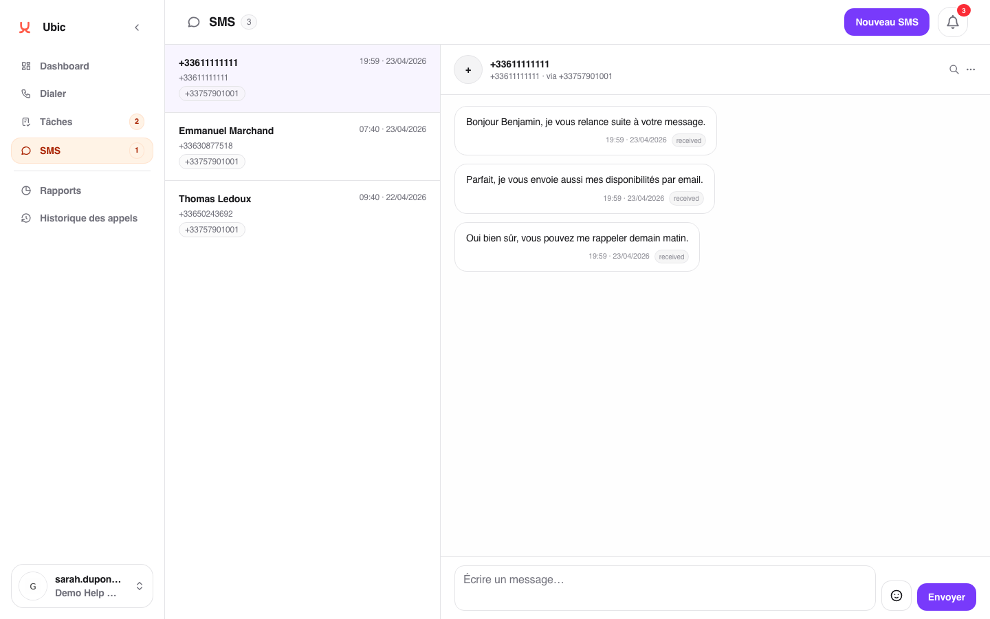 Envoyer un SMS depuis une fiche prospect | Ubic